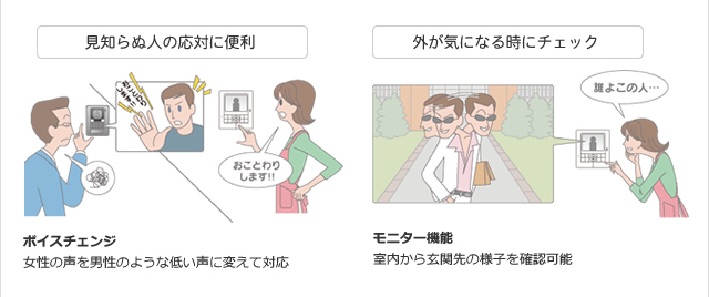 マンション、一戸建てを問わず普及しているドアホン。特に女性やお子様、ご年配の方が暮らす住宅では、心強い味方になってくれるはずです。画面下部に操作や設定の手順を表示するので家族みんながスムーズに使えます。 またファクス・電話で来客応対することも可能です。