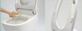 完全一体成型の「スキマレス設計」なので、汚れがたまりやすい便座と便器の隙間がなく、お掃除が楽にできます。
