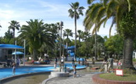 自然あふれる緑の中に、テニスコートや野球などもできる球技場などのスポーツ施設があります。その他にも展望台やなどがあり、春には桜が満開となり、多くのお花見客でにぎわいを見せます。夏になるとウォーターランドに多くの人が訪れ、プールのアトラクションのひとつ「ウォーターキャッスル」や、迫力満点の滑り台「ウォーターシュート」、小川のせせらぎで一休みできる「流れゾーン」など子ども達に大人気のスポットとなっています。